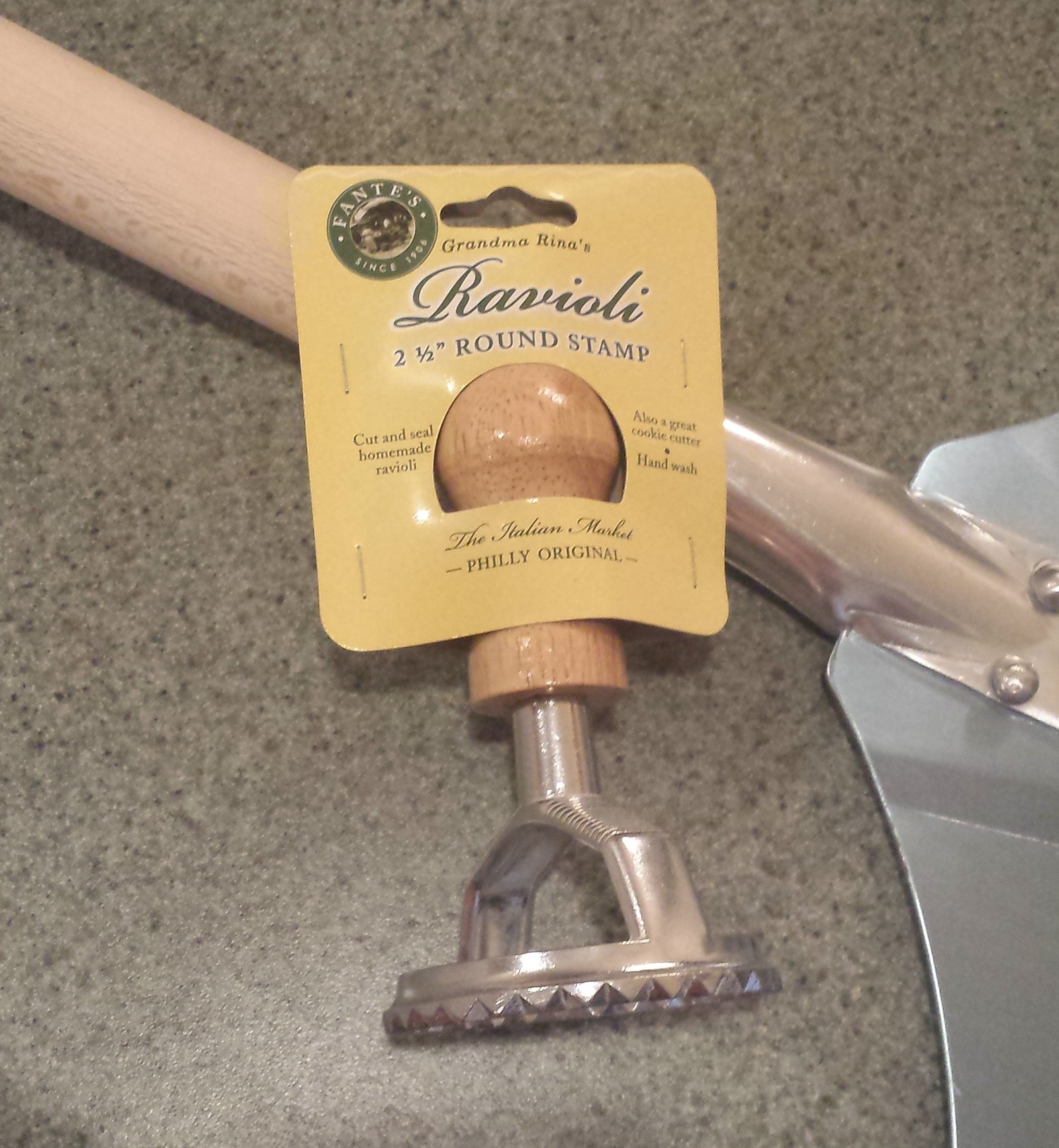 This all started because I found a ravioli stamp at Ace Mart Restaurant Supply. So, we began looking for recipes online using what we already had in the kitchen. We had a pound of fresh Gulf Shrimp and quite a bit of arugula so I started scouring the internet for ideas. Most of the recipes for Shrimp Scampi Ravioli started off with prepackaged ravioli so those were out of the running. I finally found an Arugula & Goat Cheese Ravioli recipe on epicurious.com. This recipe became our inspiration for the ravioli we made.