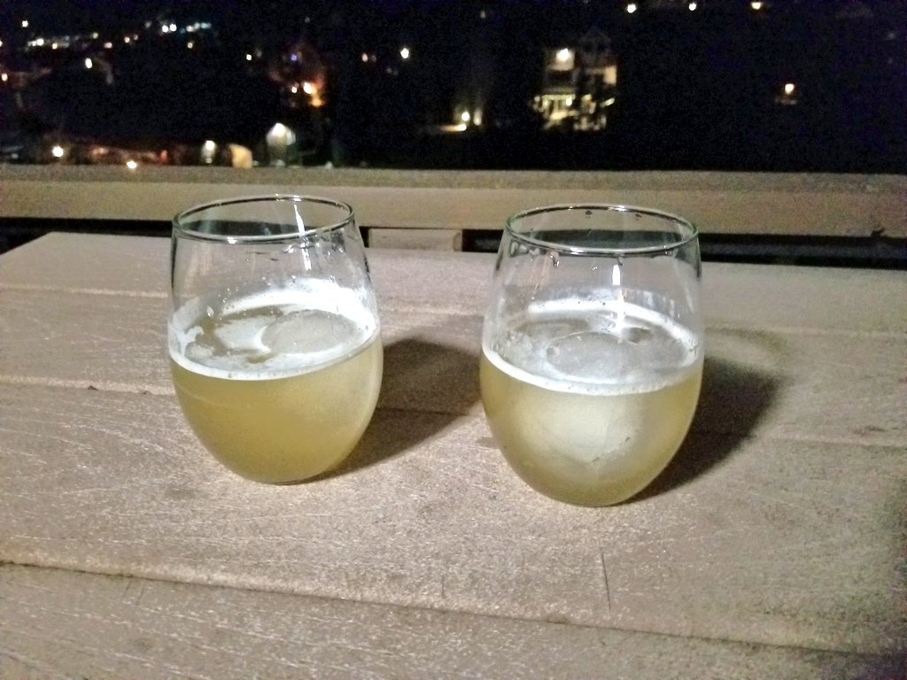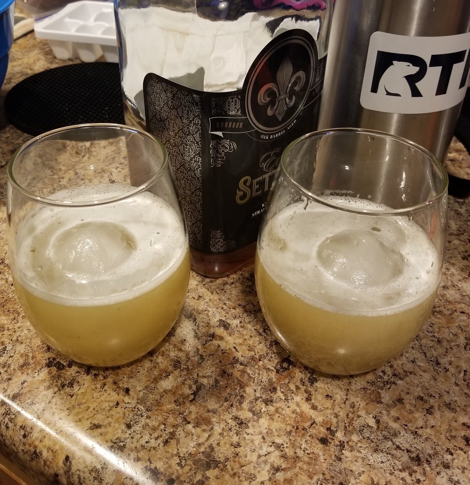We found a couple versions and had to try it. We didn’t have grapefruit juice but we did have some Fresca, which actually worked really well. Here’s our version for one drink.