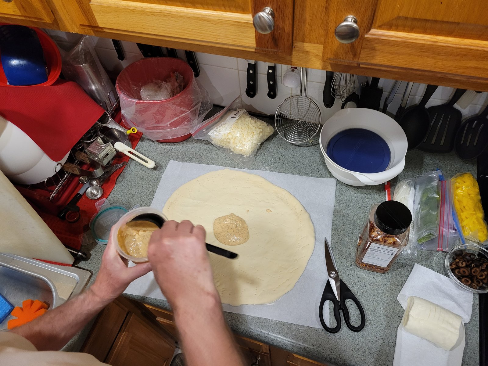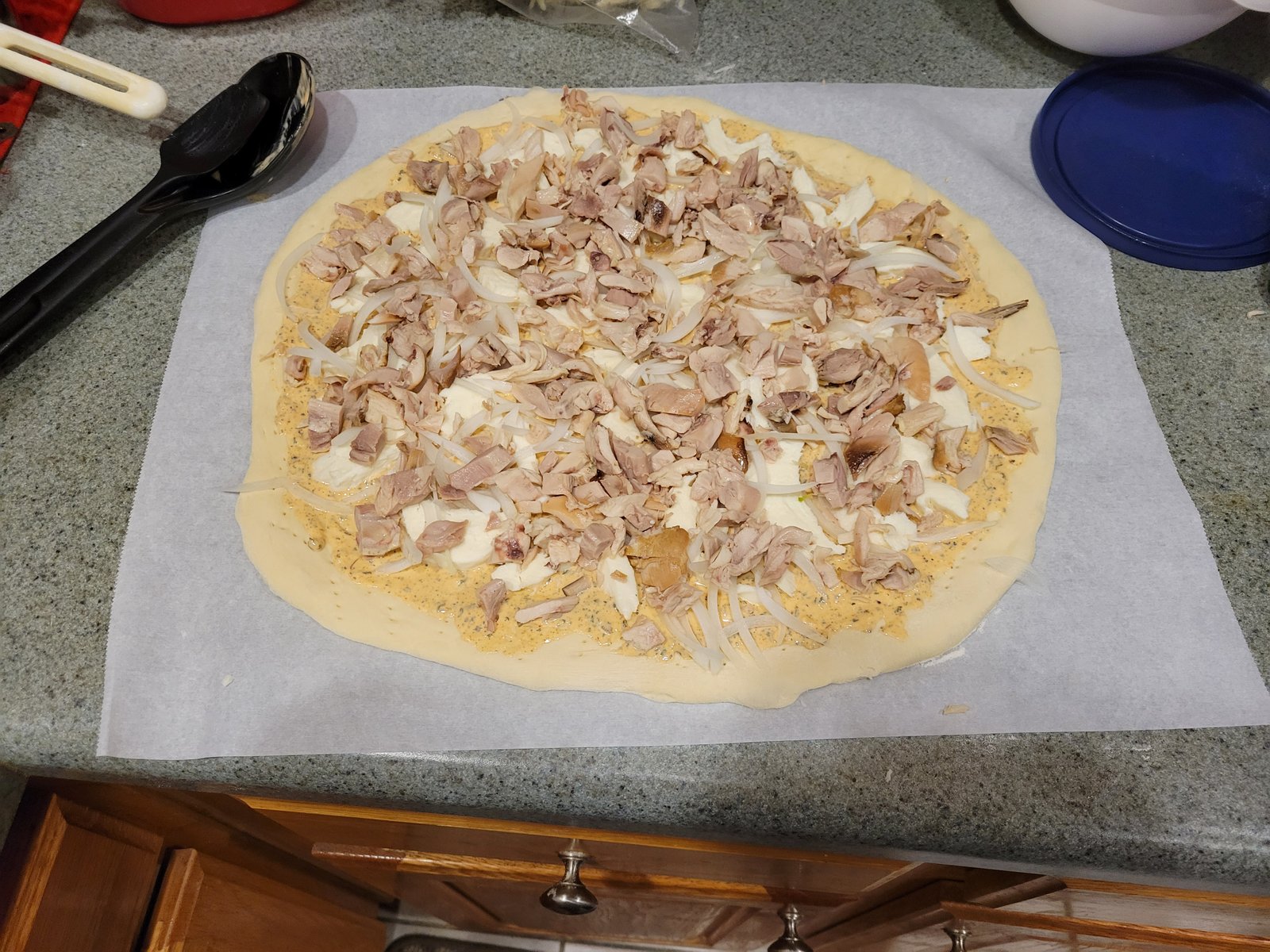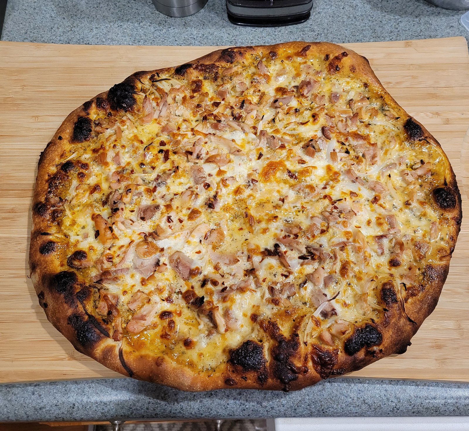 Yep, it’s another pizza recipe. This time we tried out a new sauce called White BBQ Sauce and is sometimes referred to Alabama White Sauce. It’s a mayonnaise based sauce that is used on chicken and seafood, and as a general condiment. This one has been modified for a pizza sauce, hence the Italabama name.