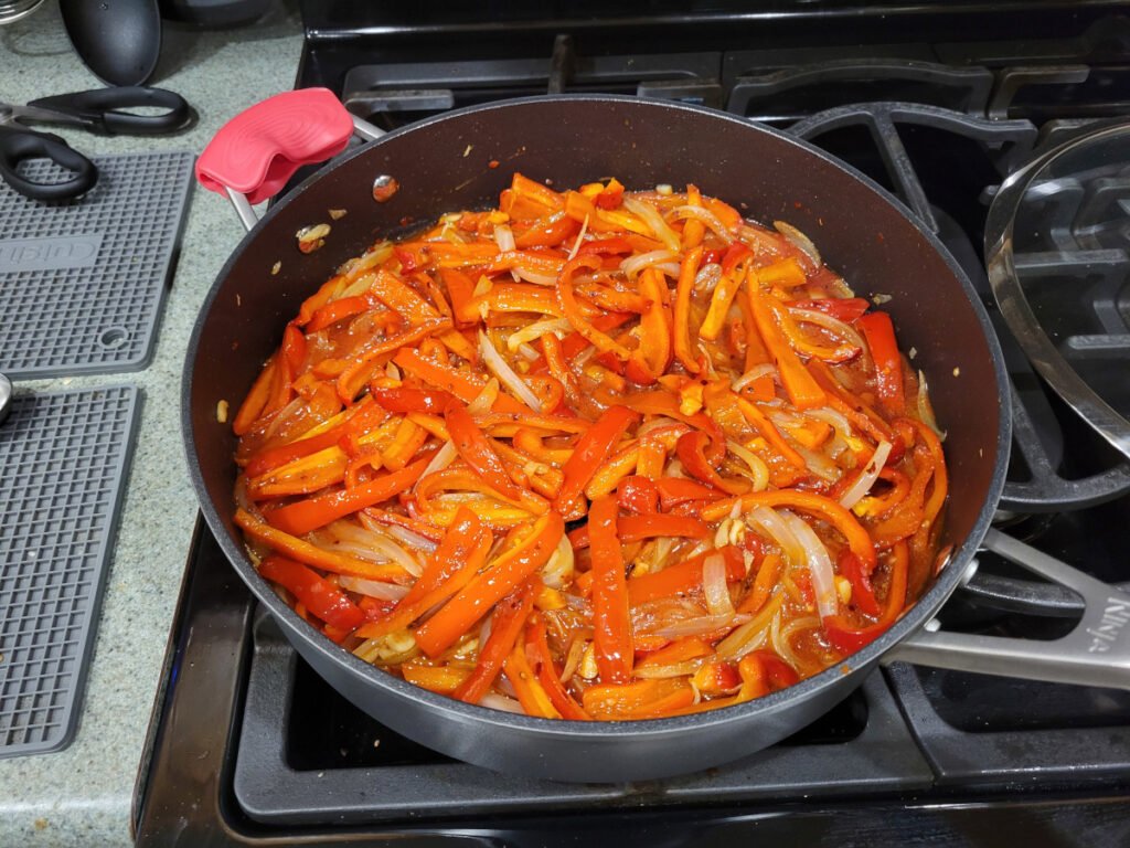 - Continue to simmer for another 10 minutes or until the sauce is thickened and the peppers are soft and tender.