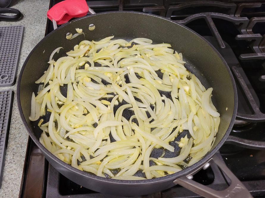 - 1 yellow onion, thinly sliced